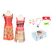 • Includes 2 Moana-inspired adventure dresses plus headband, necklace, bracelet, earrings, ring, anklet, hairpin & keepsake trunk.